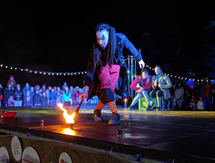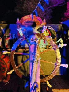 Avec leurs yeux vides et leurs gestes décomposés, ils s’amusent à jongler avec des crânes, des os et des objets luisants qui semblent flotter dans la nuit. Entre éclats de rire macabres, chutes improbables et prouesses d’équilibre, le public ne sait plus s’il doit avoir peur… ou éclater de rire.